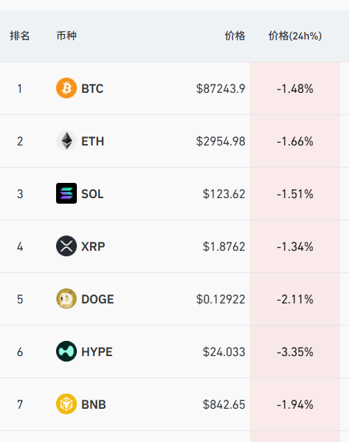 加密货币方面,多只币种集体大跌,比特币盘中一度跌至87000美元下方,近24小时全球超8万人爆仓。