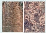 图③:布由岩画(左) 热帮沟藏文石刻(右)